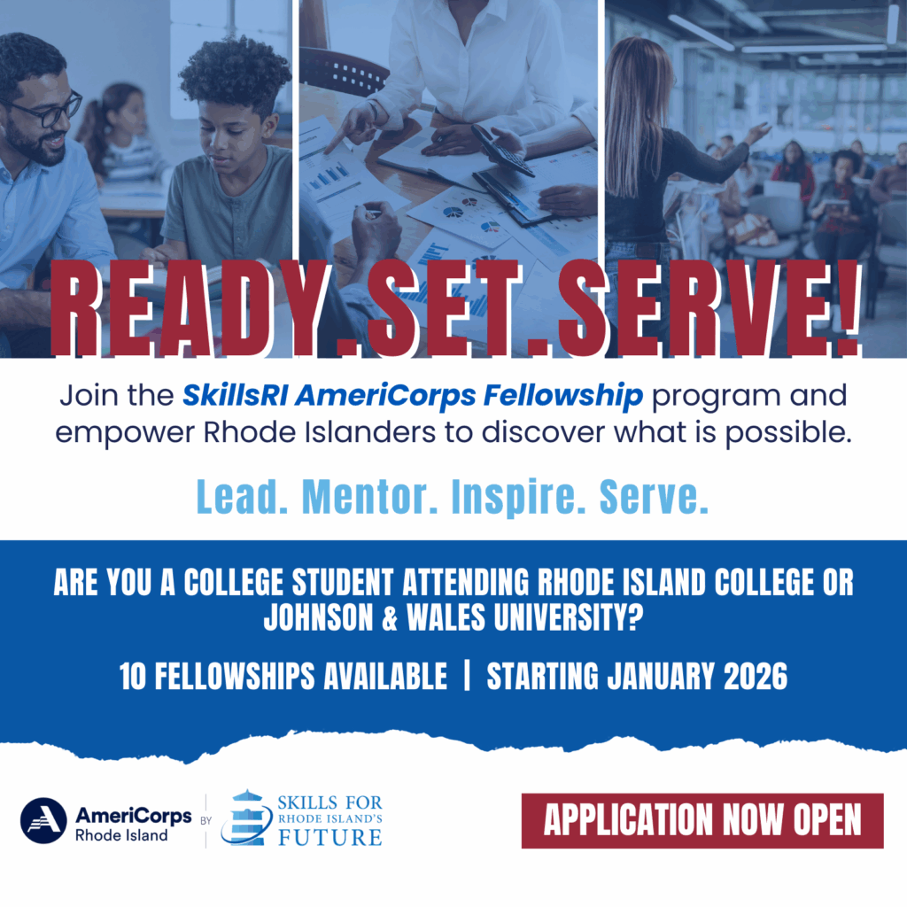 - December 23, 2025: SkillsRI AmeriCorps Fellowship Application DUE by 11:59 PM. Incomplete or late applications will NOT BE CONSIDERED